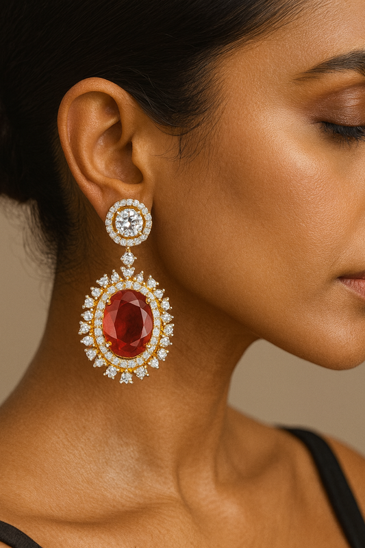 92.5 Silver Ruby Radiant Earrings