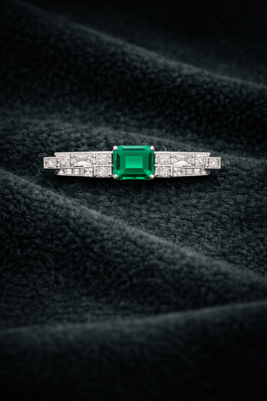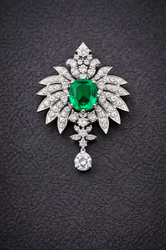 Pure Silver Emerald Rays Brooch