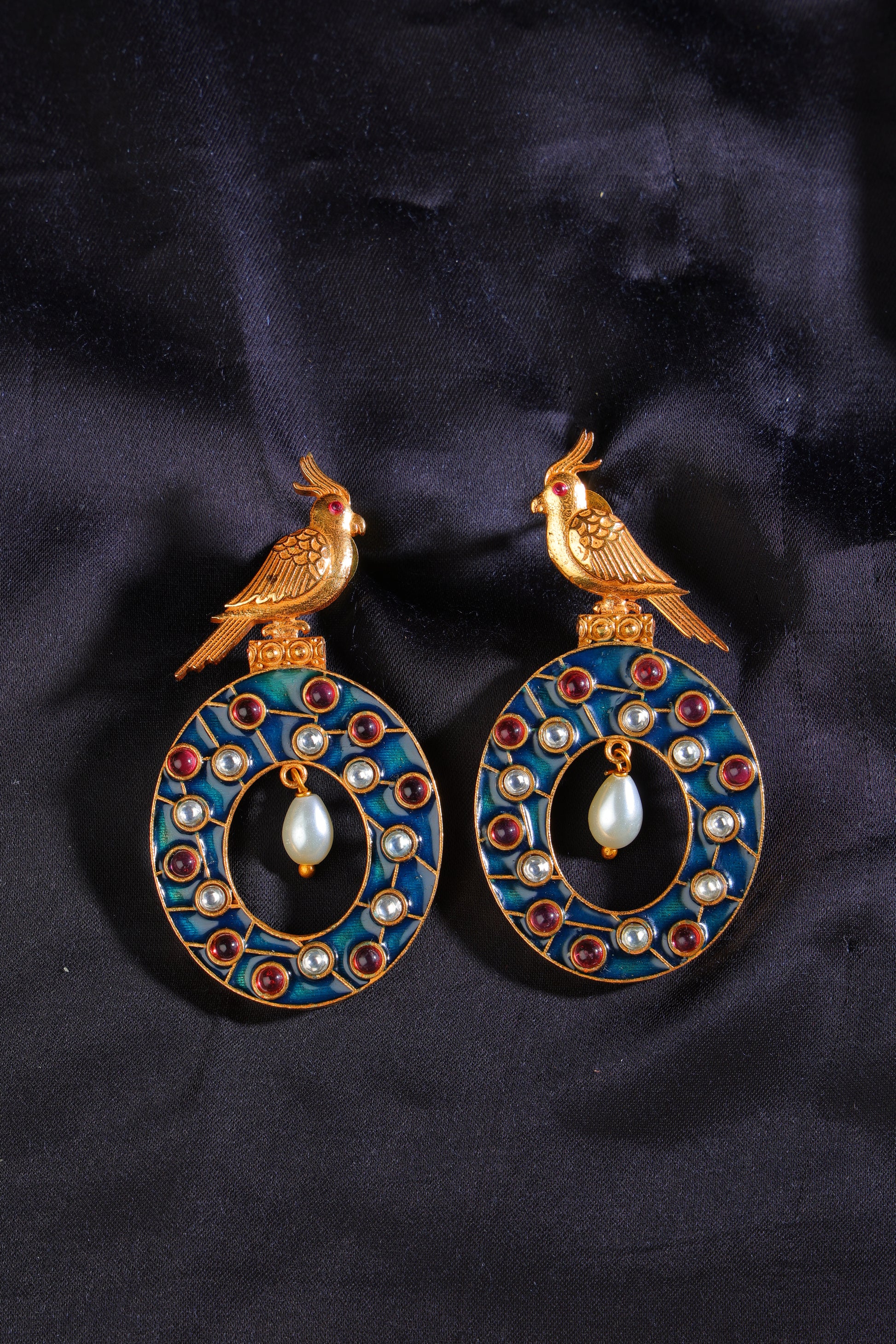 Elevate your everyday look with these Blue Meenakari Earrings, featuring intricate bird motifs that capture timeless elegance. Crafted in mixed metals, their detailed meenakari-style enamel work adds a vibrant yet refined touch. Perfect for casual wear, these earrings bring a sophisticated charm to any outfit, blending artistic craftsmanship with modern style.