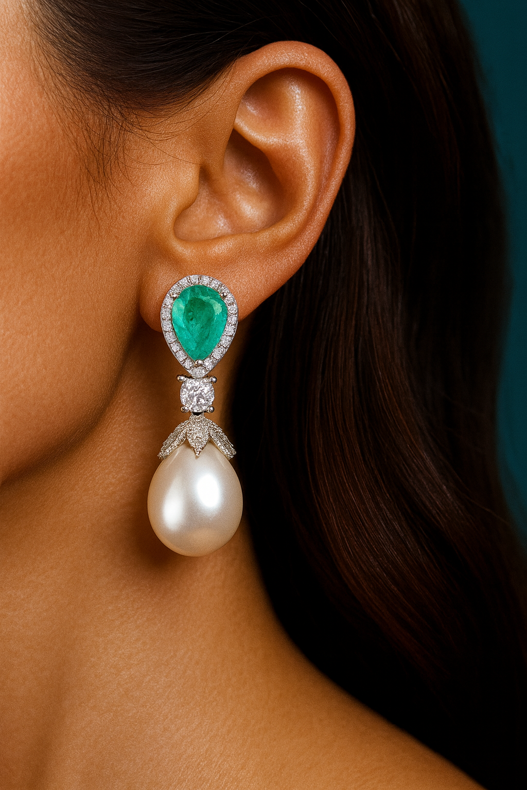 Dual Sparkle Drops showcase the perfect marriage of luxury and versatility. Crafted with emerald-hued cubic zirconia stones set in a sophisticated mixed metal framework with a pristine white polish finish, these drops deliver bold, eye-catching elegance. The contrasting metals create dimensional depth while the brilliant gemstones catch light from every angle. Ideal for elevating both everyday wear and special occasions, these earrings make a refined statement without compromise.