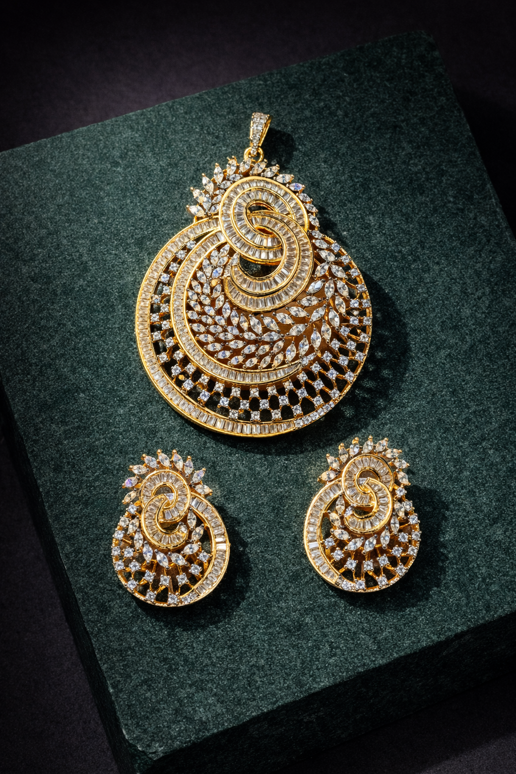 Infinity Crest Pendant Elevate your jewelry collection with this sophisticated pendant, crafted from mixed metals and finished in a lustrous golden polish. Featuring a timeless infinity design adorned with sparkling zircon accents, this piece embodies classic elegance with contemporary flair. The uploop construction allows for versatile styling—wear it standalone or layer it with your favorite chains for a personalized look. Perfect for those who appreciate refined craftsmanship and enduring design, this pendant transitions seamlessly from everyday wear to special occasions. Matching earrings complete the set, offering a coordinated aesthetic for a polished, put-together appearance.