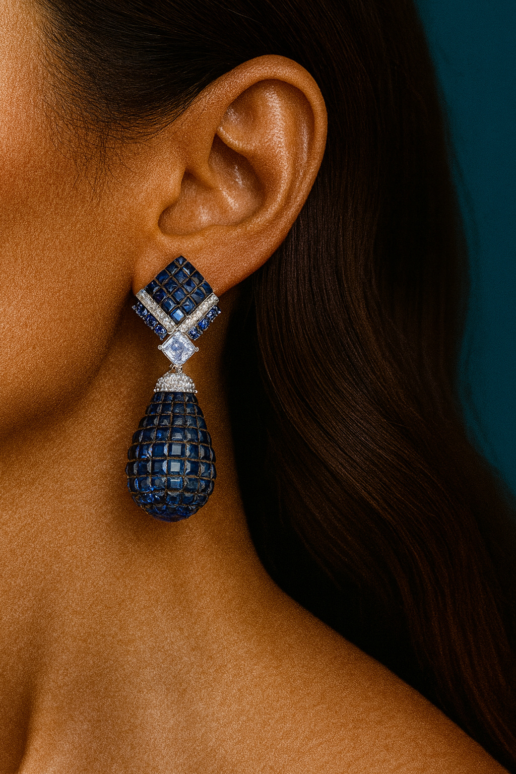 Sapphire Majesty Drops showcase an exquisite blend of mixed metals adorned with vibrant coloured sapphire stones, each piece finished with a pristine white polish. The dazzling design captures light beautifully, creating an elegant statement that elevates any occasion. These sophisticated drops combine timeless craftsmanship with contemporary allure, perfect for those who appreciate refined luxury and distinctive jewellery that commands attention.